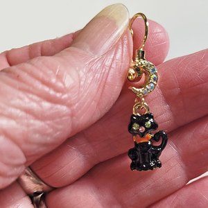 ๐๐๐๐๐ ๐ ๐๐๐๐ BLACK CAT Familiar LeverBack Earrings GoldTone Halloween