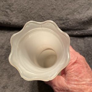 This vase belonged to my husband’s grandmother. We have had it for about 25 years. There are no markings. It is a beautiful vase. I used it a few times. I put fake holly & berries in it for decoration. I put poinsettias in it for a lovely centerpiece on tables at Christmas. Back then we had a large crowd and lots of tables so it was used. Now it is not used anymore. We will need to downsize soon so I am letting things go a little at a time so when the time comes I won’t be rushed. This is the only vase I have seen like this. No cracks, chips or damage I can find.
