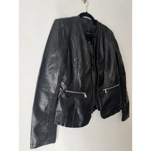 Therapy Black Faux Leather Open Front Cropped Biker Moto Jacket Womens Sz Medium