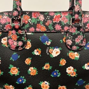 Coach Mini Bennett Black Satchel In Floral Mix Pattern Crossbody Silver Hardware