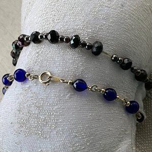 Women Bracelet Lot of 2 Wrist Band Blue and Black Bracelet Fashion Jewelry
