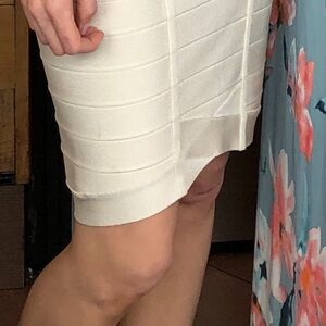 Beautiful Herve Leger Off White Knee Length Skirt