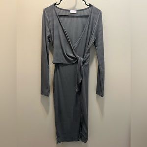 Pink Lily Ribbed Midi Grey Dress