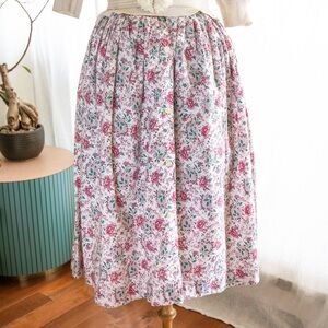 A dreamy 1980s does 1950s style vintage circle skirt with the prettiest floral block print made from cotton.