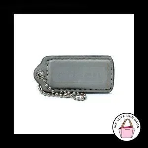 2.25" Medium COACH GRAY Leather Nickel Key Fob Bag Charm Keychain Hang Tag