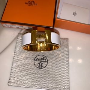 💯AUTHENTIC Hermes clic clac bracelet. White and gold size PM. Only worn one Time and is in EXCELLENT condition, ABSOLUTELY NO SIGNS OF WEAR!! Comes with original box, dust bag and receipt!!