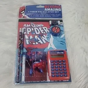 7 Piece Beyond Amazing Spiderman Calculator Set by Marvel (2 pencils. earser. pencil sharpener, notepad, memo book, Calculator)