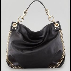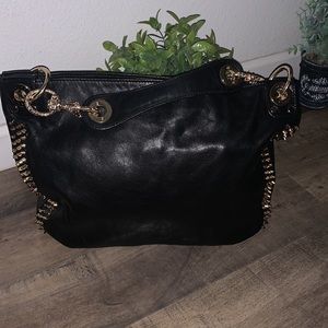 REBECCA MINKOFF BLACK LEATHER GOLD STUDDED HANDBAG