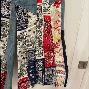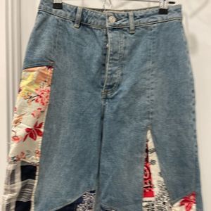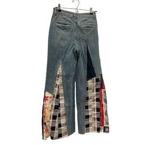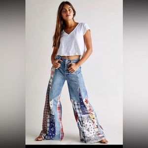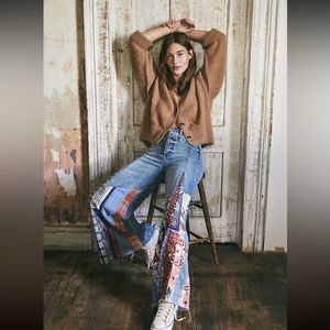 Patchwork Denim. Add a special, vintage-inspired touch to any look with these essential jeans from our We The Free collection featured in a mid-rise, flare silhouette with exaggerated print piecing at bottom for added dimension.