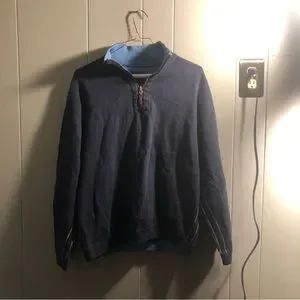 Navy blue sweatshirt not sure but believe it’s a size medium. Izod brand.