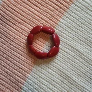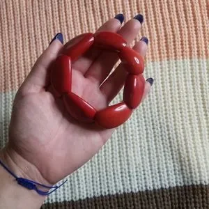 Vintage Large Red Polished Tagua Seed Bead Bracelet
