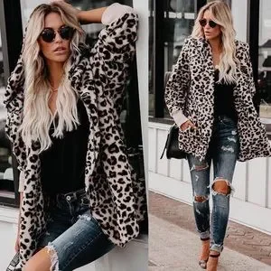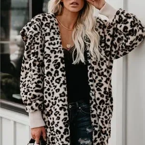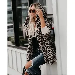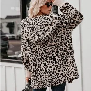 Women Leopard hooded jacket plush warm fuzzy jacket