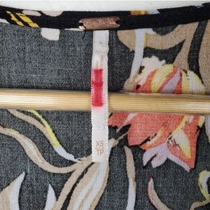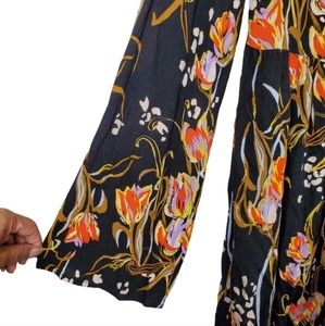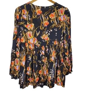 Free People Bella Black Floral Long Bell Sleeve Oversize Blouse Top Sz XS