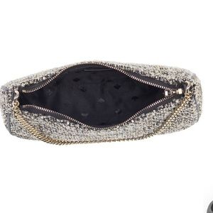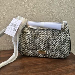 Brand new! Kate Spade New York in a textured tweed print, crisp piping with a top zip closure, gold chain crossbody strap and structured flat base for stability. Interior has signature Jacquard lining.