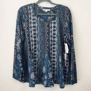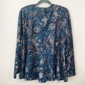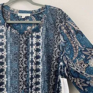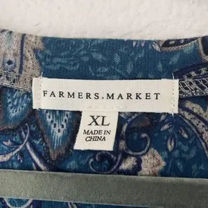 Farmers Market Blouse Top Womens Size XL Boho Teal Paisley NEW