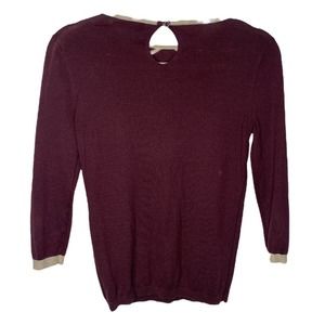 This simple sweater is perfect for a day at the office! It is maroon with beige accents on the trim and a keyhole in the back.