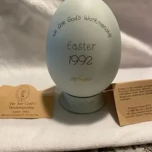 This is a 1992 dated porcelain egg with base, box, and tags. On base it is 4&1/2” tall