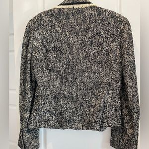 On trend cotton tweed jacket is perfect all year. Classic Chanel styling with detailed metal buttons. EUC but needs a dry cleaning. Pair this with a tshirt and jeans for casual look or LBD for professional wear.