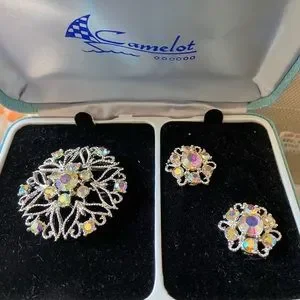 Vintage Cameo aurora borealis pin and earring set