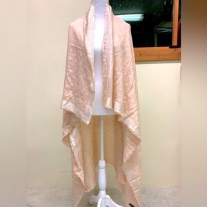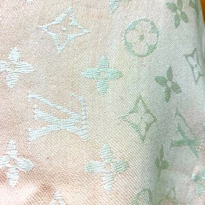 Auth Louis Vuitton Rose Pink Cream Monogram Denim Shawl Silk Wool Wrap Preloved