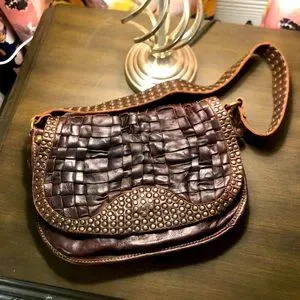 Frye Stacy Studded Leather Woven Shoulder Bag - Rare