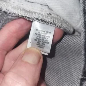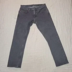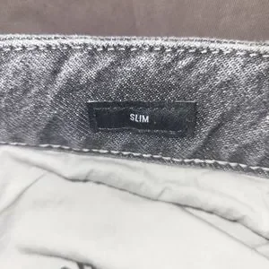 In excellent pre-owned condition, no stains, no flaws, no tears. 98% organic cotton, 2% spandex, gray, 31x30