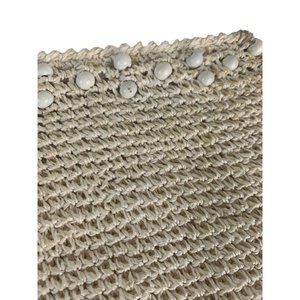 Vintage Crochet Straw and Beaded Off White Zip Top Clutch Bag Made in Japan