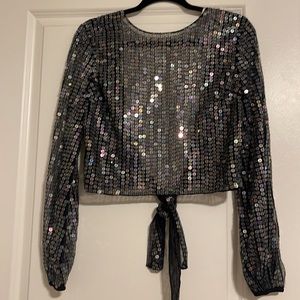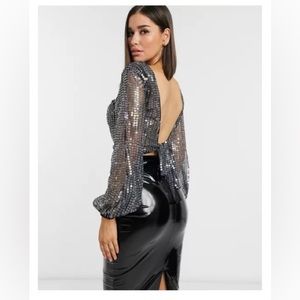 ASOS Black Sequin Shirt. Straps to tie in the back or wrap around your waist. Brand new never worn.