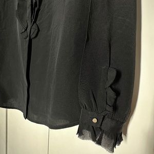 Zadig & Voltaire Long Sleeved Ruffle Front Black Silk Blouse size XS