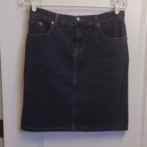 Beautiful, like new Izod knee length denim skirt, size 6. No slit.