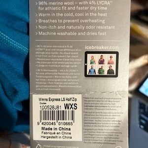 New with tags womens Bodyfit plus Base Layer long sleeved 1/2 zip. Size XS Color Blue Merino 260, thumbholes