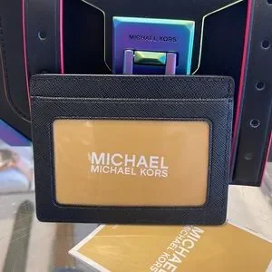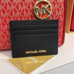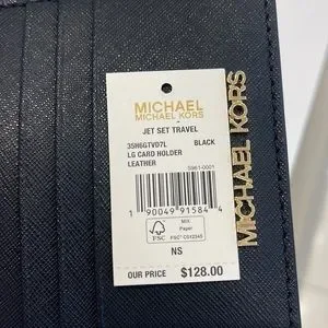 MICHAEL KORS Leather Large Card Holder Case Wallet Black NWT