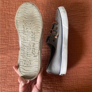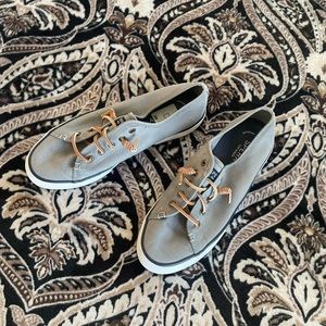 Sperry Gray Grey Pier View Sneakers with Brown Leather Laces & Memory Foam. Size 8.5.