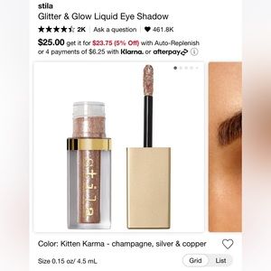 Glitter & glow liquid eyeshadow retails for $25 + tax