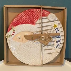 NWT Mud Pie Santa Ho Ho Ho Cheese Plate with Spreader