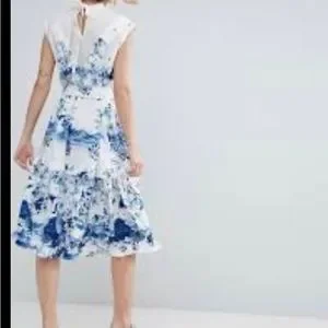 Worn once•ruffle skirt•self tie at waist•raw cut edging•keyhole back•regular fit