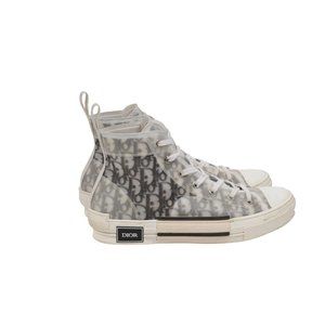 Dior Mens B23 High Top Sneakers Size EU42 US9 Black White Oblique Logo Trainers