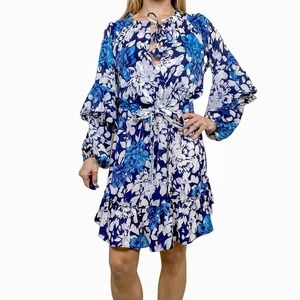 Misa Los Angeles Dress Mini Floral White Blue Nehda Botanical Size Medium