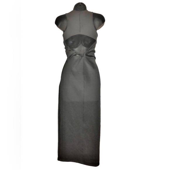Zara black scuba fit twisted back cutout front slit sleeveless dress size XS