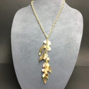 Long Y Drop Necklace Barbie Gold Pink Salmon Rose Leaves Dangles Retro Cottage