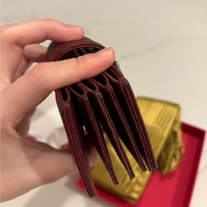 DIOR Authentic Burgundy Calfskin Leather Diorama Gusset Card Holder