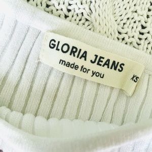 Gloria Jeans Ribbed Boat Neck Top XS White Viscose Blend