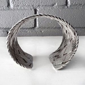 Huge VINTAGE Sterling Silver Mexico Woven Unisex Cuff