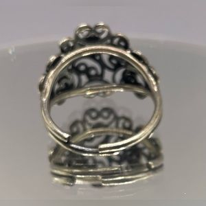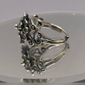 Beautiful Silver Tone Filigree Ring Size 8 Adjustable. Minor wear consistent with age. In great condition.