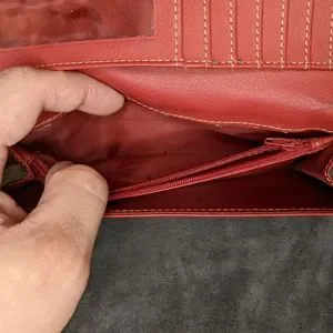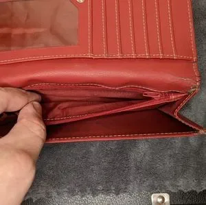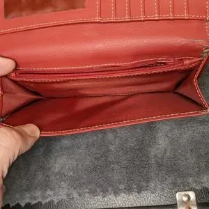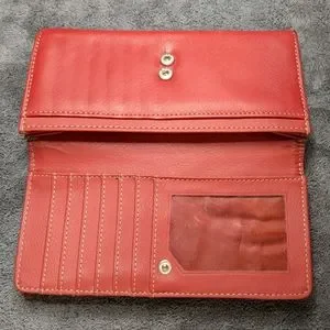 This sleek woman's wallet clutch comes in sexy cherry red. A powerful statement to add to your wardrobe!