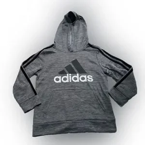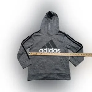 Adidas Boy’s Long Sleeve Hooded Pullover Grey Black Size:7