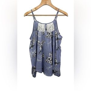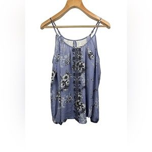 Rewind Semi Sheer Shoulder Cutout Floral Tank Top with Long Sleeves. Size: Small. Material: Polyester, Spandex, Cotton and Nylon. Adjustable Straps.