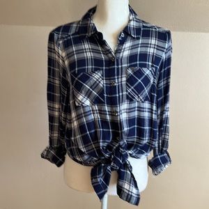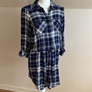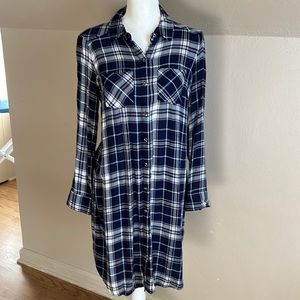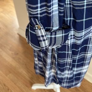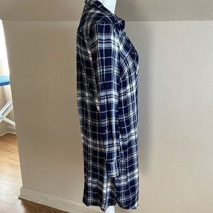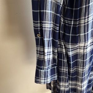 Motherhood flannel plaid maternity dress navy and white button front