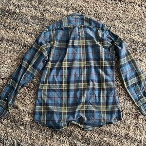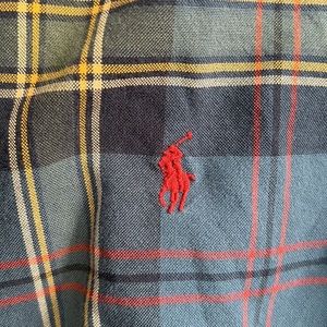 Blue and green plaid cotton button down shirt from Polo Ralph Lauren featuring a button down collar, an embroidered designer logo to the chest, a front button fastening, long sleeves, button cuffs and a curved hem.