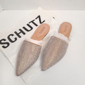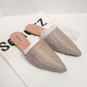 Schutz | Felicie Crystal Flat Mule Slides in Honey Beige Size 7